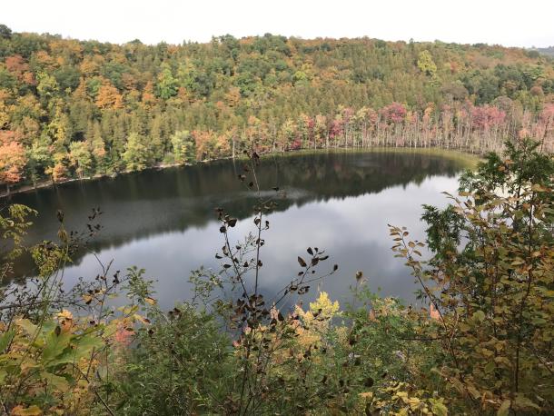 Clark Reservation is a botanical jewel formed by glacial action. With cliffs and rocky outcrops, woodland and meadow, a wetland and a eutrophic glacial plunge basin lake, paths along dry rocky river beds - the microhabitats abound.  A must-visit site full of ferns, mosses, and great views.