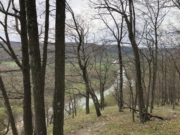 Frenchman's Bluff is a Nature Conservancy Property adjacent to, and entered through, Tanglewood Nature Center. Lovely overlook of the Chemung River at the end of the Gleason Meadows/Frenchman's Bluff trail. The top of the bluff is a dry woodland with numerous interesting species.