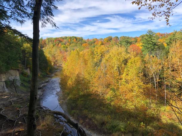 Over 500 acres owned by Cornell University, used by various departments for outdoor activities.  The portion along Fall Creek is managed as a Natural Area by Cornell Plantations.  Open to the public with trails; small parking area off of Hanshaw Rd.