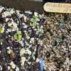 Wild Geranium Cotyledons and first leaves in a flat where all the seeds ended up on the same side (watering issue!) Photo by R. Parker |
